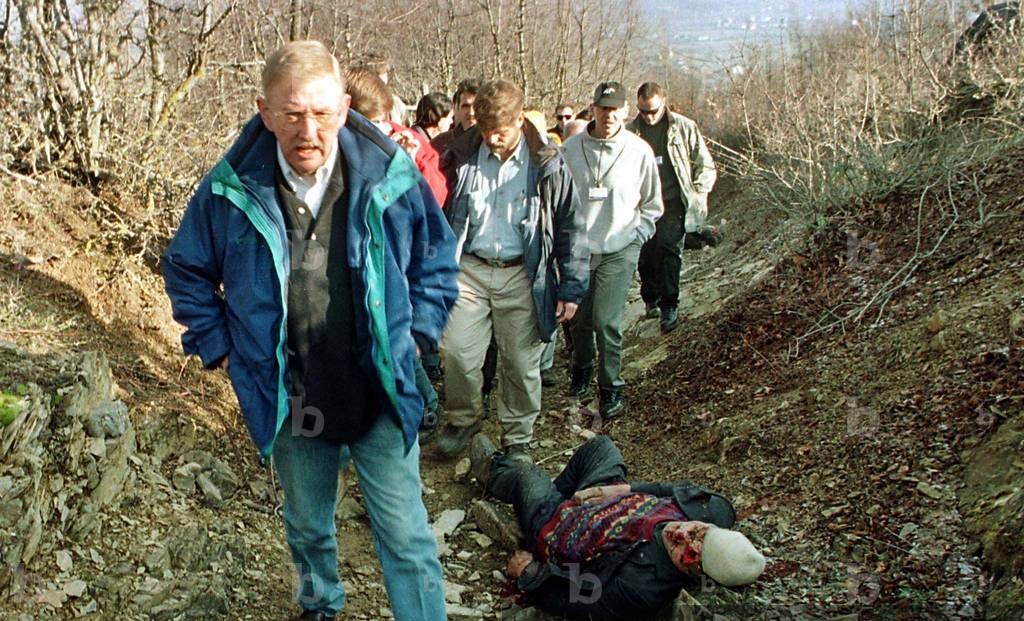 Central to Racak’s potency was a publicity stunt staged January 16th 1999 by veteran US deep state operative William Walker, then-chief of the Organization for Security and Cooperation in Europe’s (OSCE) Kosovo Verification Mission (KVM). First, he led Western journalists and European officials up a hill near the village to a site where Kosovo Albanians dressed in civilian clothes lay dead, apparently torn apart unarmed in cold blood by Yugoslav police and military gunfire. At a subsequent press conference, Walker explosively declared: