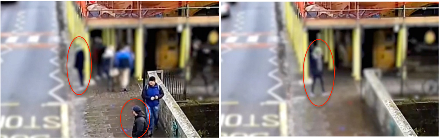 CCTV clips of the Skripals on March 4th 2018 released by the Inquiry indicate the alley twosome bore zero even vague similarity to Sergei and Yulia whatsoever, suggesting they weren’t mistaken for the Skripals by police. Coincidentally though, the unidentified blonde woman was carrying a red bag, just as Yulia was widely reported to have in her possession when found comatose. If officials did view the pair as suspicious, then publishing the images - particularly at such an early stage - was a highly unusual move.