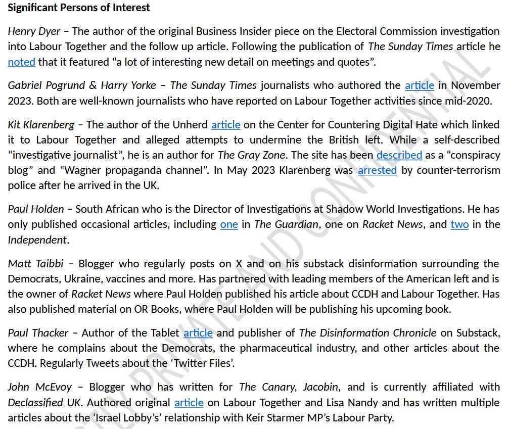 An extraordinary political scandal has erupted in Britain, raising the prospect Prime Minister Keir Starmer’s already embattled government could tumble. On February 5th, it was revealed Labour Together, a dubious ‘think tank’ intimately intertwined with the Labour party, paid shady PR firm APCO Worldwide tens of thousands of pounds to spy on journalists. Primary targets were reporters exposing damning information on Labour Together’s finances, and central role in Starmer’s corrupt rise to power. Others were considered “significant persons of interest”, for reasons unclear - including me.