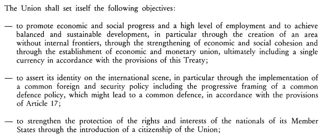With the collapse of Communism across the Warsaw Pact in 1989, and the Soviet Union’s reduction to reliable US lickspittle by the rule of Mikhail Gorbachev, European leaders started to think critically about the continued necessity of NATO - a military alliance created to prevent an invasion that never came, now rendered invalid. In 1991, French President François Mitterrand and German Chancellor Helmut Kohl commenced discussions about integrated defence and foreign policy across Europe, with the explicit purpose of reducing US influence over the continent.